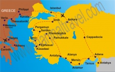 This morning take a beautiful drive to IZMIR (ancient SMYRNA), After visiting of the St.. Policarp church in ) IZMIR . Continue to in Akhisar , ancient commercial place in connection with TROY & SARDES. Overnight in Pergamum.