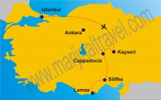 You will have free time until afternoon then you will be transfered to the domestic airport for your flight to Kayseri. Overnight in Cappadocia.